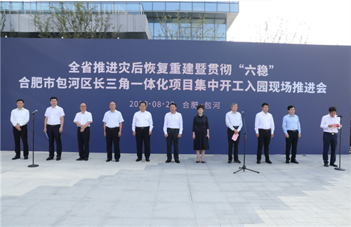 (长三角干部培训)8月29日上午,合肥市包河区长三角一体化重点项目开工入园现场推进会在滨湖金融小镇召开,安徽省委常委、合肥市委书记虞爱华,市长凌云,安徽省发改委副主任曹发义,合肥市领导王文松、杨伟、龚春刚,市政府秘书长罗平,G60办、安徽省长三办、包河区有关负责领导参加推进会,杭州市余杭区政府副区长葛建伟、绿城科技产业集团总